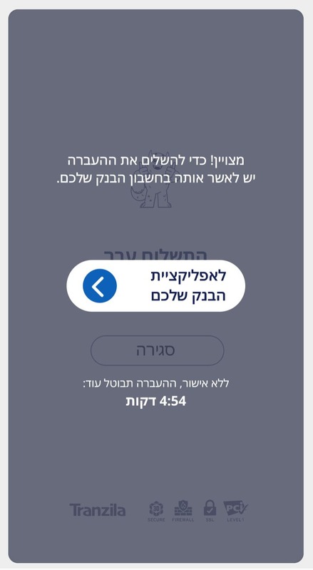 הלקוח מאשר את התשלום דרך אתר או אפליקציית הבנק.