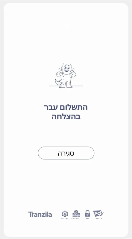 מסך סיום חווייתי עם אישור שהעברה הושלמה, כולל תיעוד מלא למעקב.